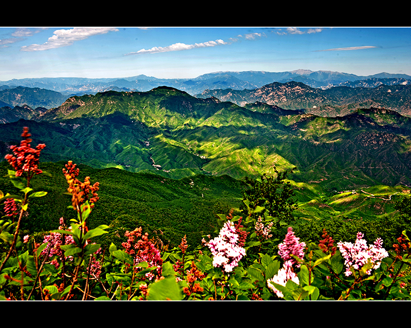 百花山百花盛开,白草畔绿意盎然。这里是房山世界地质公园地势最处,最高海拔2161米。园区内植被垂直分带明显,一年四季皆有美景:春看杜鹃,夏赏百花,秋观红叶,冬眺瑞雪,是北京地区极好的度假避暑生态乐园。
